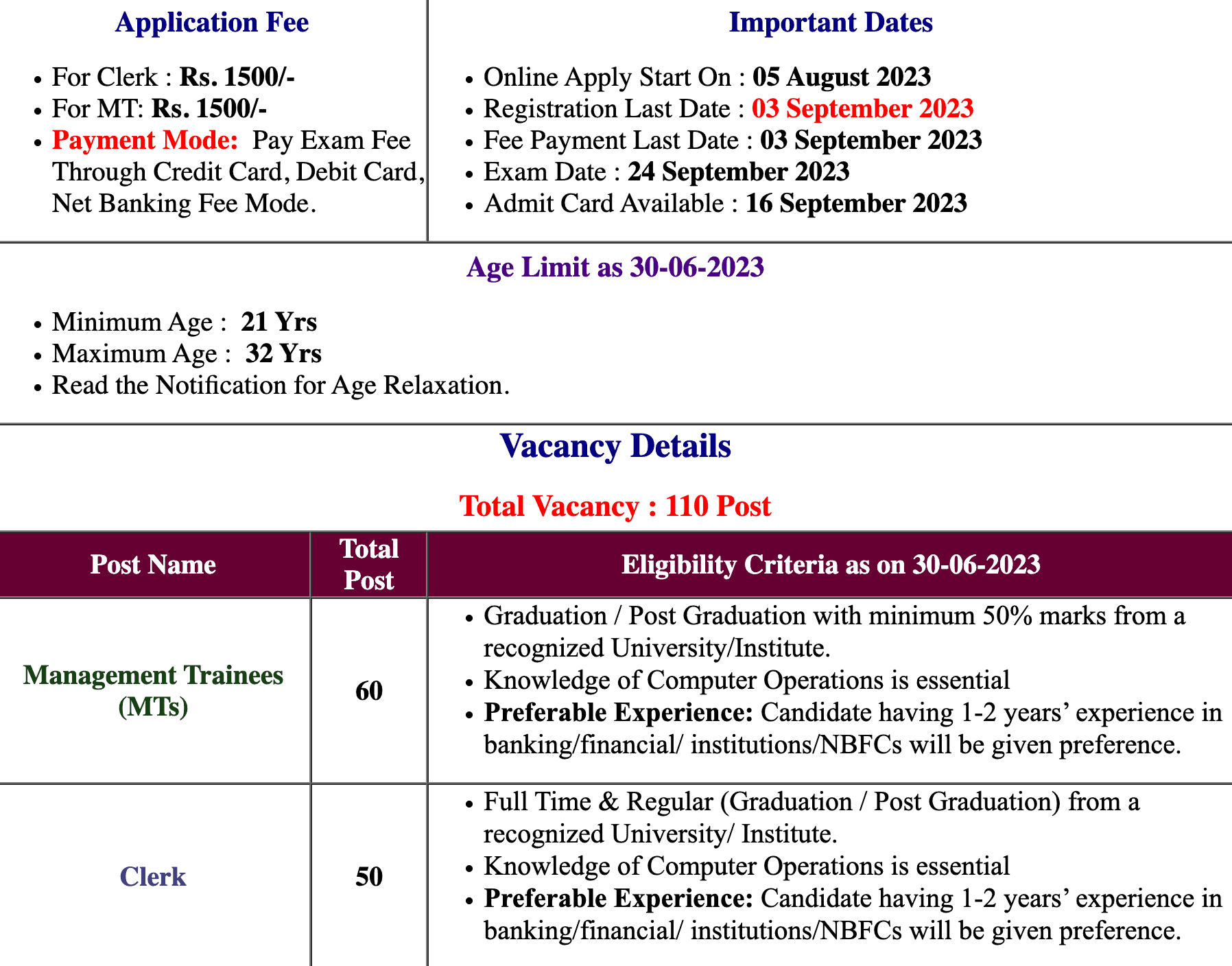 | If you are a Candidate Eligible to take The Following Exam and have met all Eligibility Criteria, please visit the Official Website to Read the Full Notification. | |||